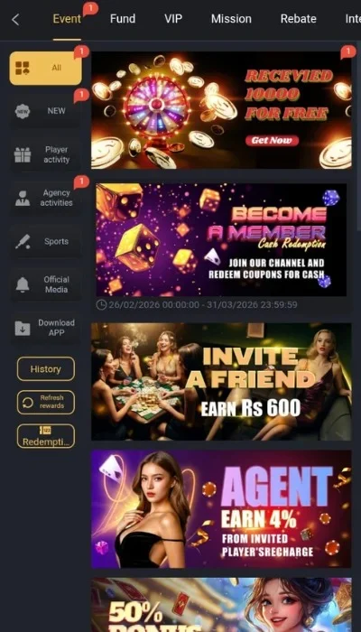 Regular players receive free chips every day just for logging in. Additionally, referral bonuses let you earn extra cash when friends join using your invitation code.